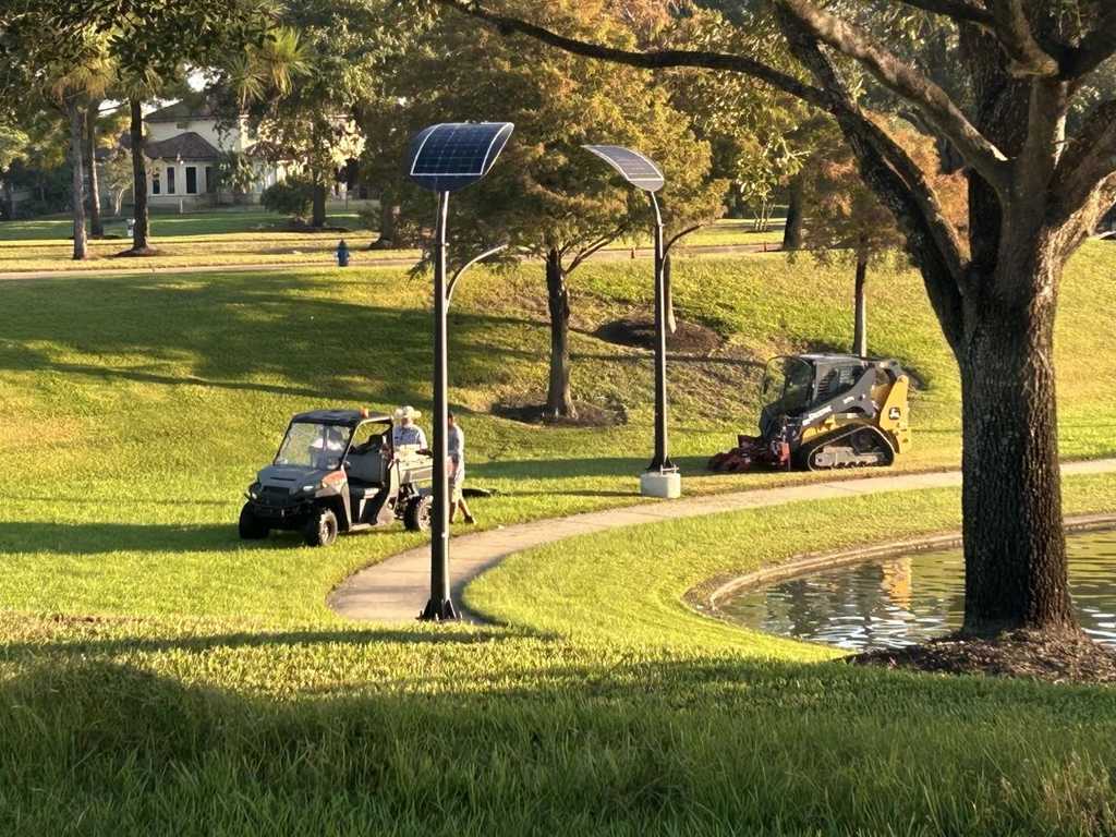 Crews are back onsite around the lakes with new equipment replacing poles. Please be aware that the areas around the lake will be an active work zone. Residents can expect to see 15-20 poles per day come back to life. The goal of Harris County MUD 391 is to have all three lakes back up and running at 100% operability in time for holiday festivities at the end of the month.