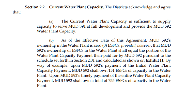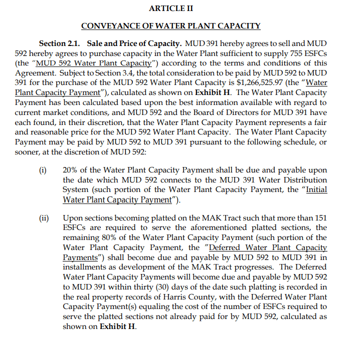 We will make payments to HCMUD No. 391 in accordance with the HCMUD No. 391 agreement.